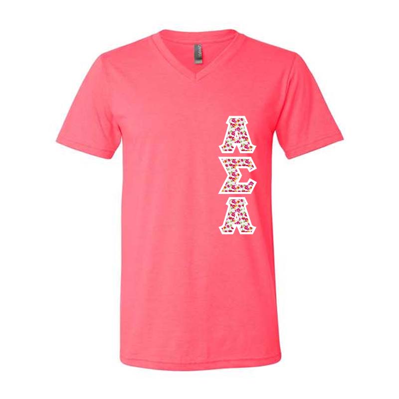Sorority V Neck Tee With Custom Greek Letter Patterns Vertical Something Greek