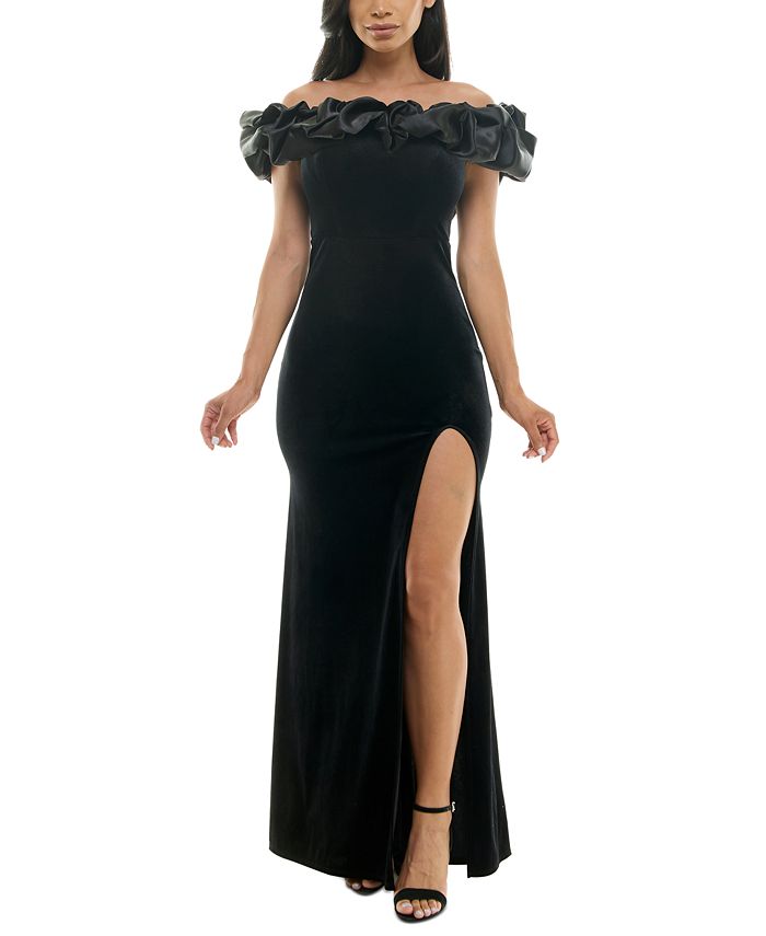 B Darlin Juniors Velvet Ruffled Off The Shoulder Gown Macy S